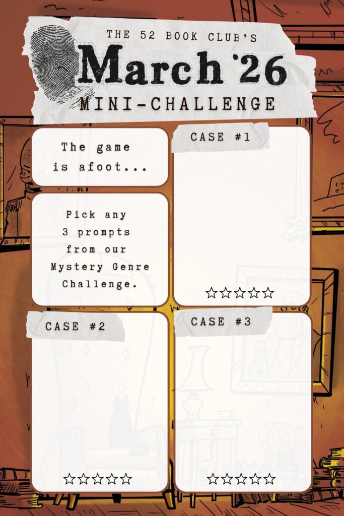 Don’t forget to share your March Mystery Mini-Challenge on your socials and tag @the52bookclub or use #the52bookclub2026 — we love to see what you’re reading!